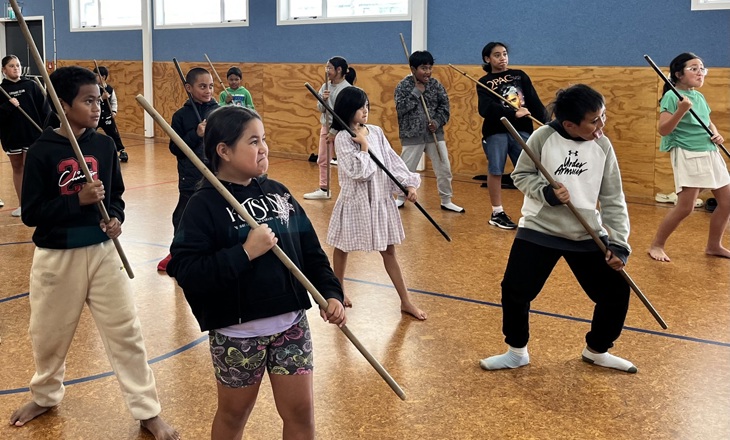 The cultural sessions combine mau rākau (traditional Māori martial arts) movements, which integrate striking, sparring and footwork, depicting Porirua landmarks, along with generic commands, pūrākau (stories) and other rākau (stick) games.
